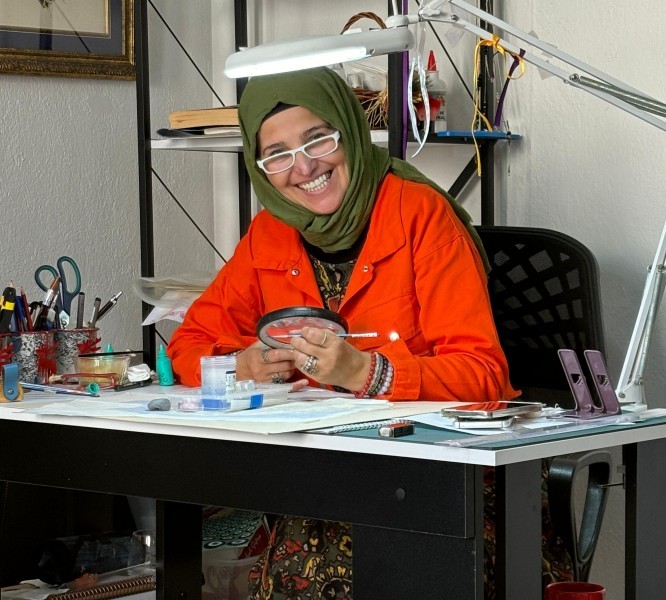 Yasemin Malcı, born on July 22, 1968, in Manisa/Turgutlu, Turkey. She completed her primary, secondary, and high school education in Eskişehir and graduated in 1989 from Eskişehir Anadolu University, Faculty of Fine Arts, Department of Ceramics. After marrying in 1991, Malcı held various mid- and senior-level management positions in several factories and later retired. Following her retirement, she began studying illumination art (tezhip) under Müzehibe Zuhal Dindar, continuing her education in this field for 10 consecutive years. She subsequently established her own workshop to train new students. Malcı participated in the team responsible for creating illumination panels for Saruhanbey Mosque, organized with contributions from the Manisa Yunusemre Municipality. She is currently teaching private lessons at her workshop in Turgutlu, Manisa, and offering courses under the auspices of the Public Education Center and local foundations. Her exhibitions include the Turgutlu Year-End Exhibitions (2015) and Yunusemre Municipality Festivals (2015–2018).