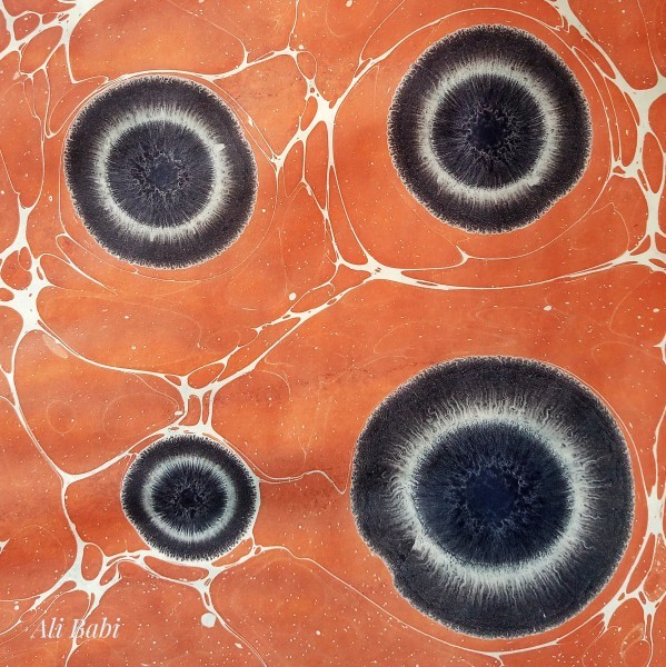 Ali Babi was born in 1986 in Bursa. He began studying the art of ebru in 2007 during his university years under Çetin Çelebi and later received further training from Elif Aydın. Working as a teacher, he continues his artistic practice in his studio in Bursa and participates in various events and exhibitions.