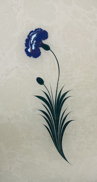 Amine Kutluay was born in 1984 in Istanbul. She began studying the art of ebru in 2006 at Fatih ISMEK under Meryem Beğen and later continued her training with Tuba Karakaş. In 2013, she held solo exhibitions in various cities and universities in Bosnia and Herzegovina, and she has taught voluntary ebru classes in associations and foundations, contributing to social responsibility projects. Kutluay continues her artistic work in private studios and is married with four children.